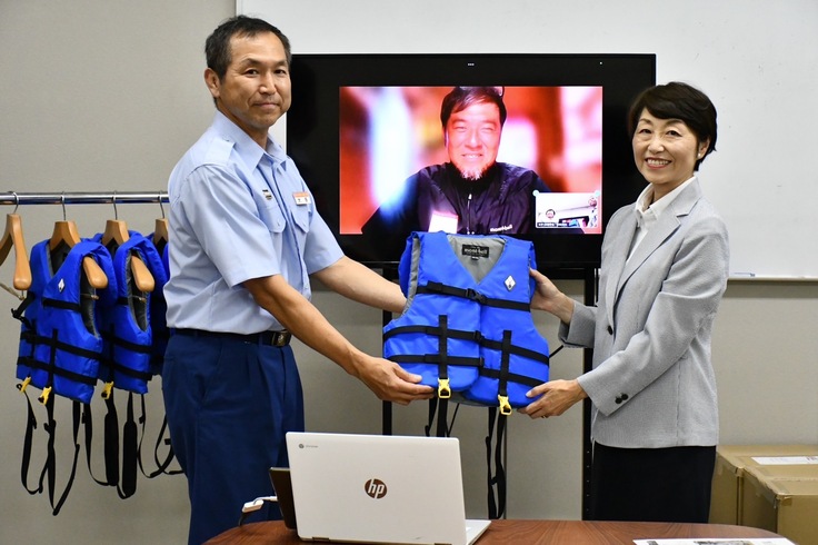 そして、滋賀県大津市では、「子どもたちにライジャケを!」びわ湖支部の鈴木さんが代理で寄贈をしてくださいました!鈴木さんは、すでに大津でたくさんのライフジャケットを寄贈してくださっていますが、今回のクラウドファンディングについてもたくさんアピールいただき、代理で寄贈してくださいました!ありがとうございました!