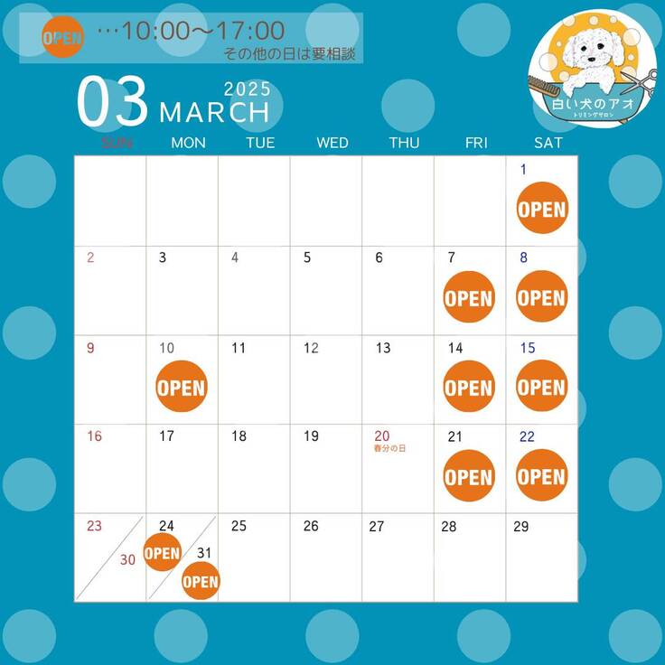もうすぐ冬が終わります。明日から3月。トリミングの季節ですね!