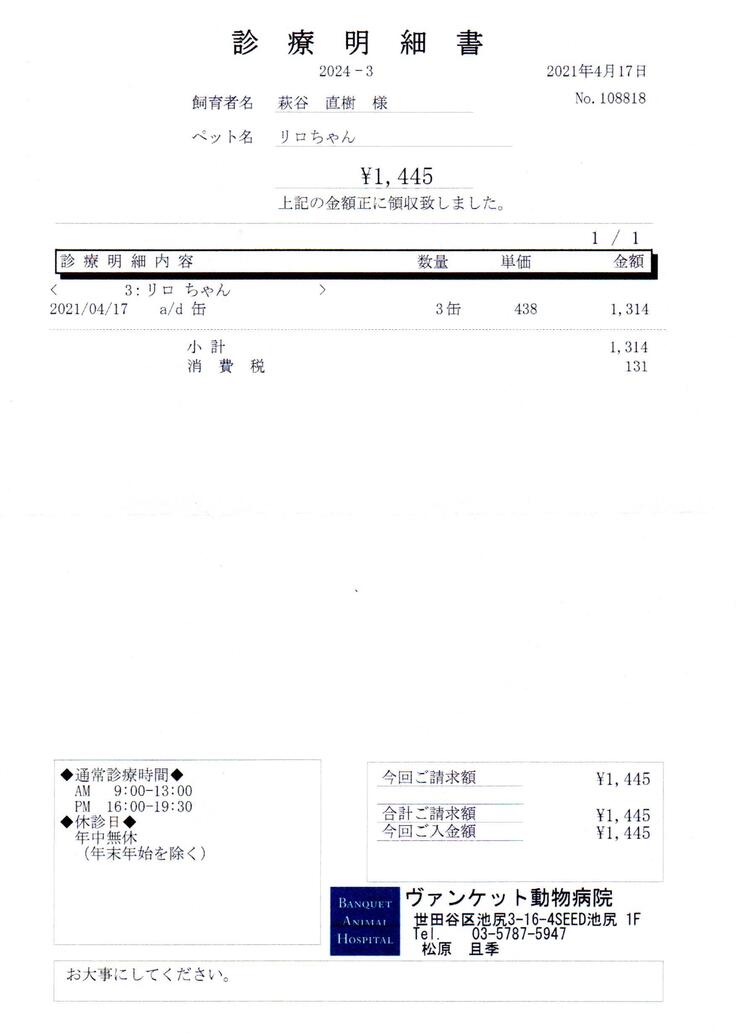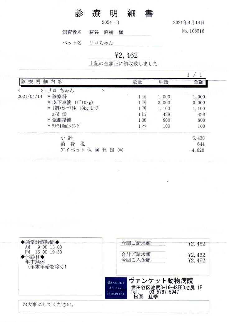 かかりつけ病院と提携している江東どうぶつ医療センターさんにて