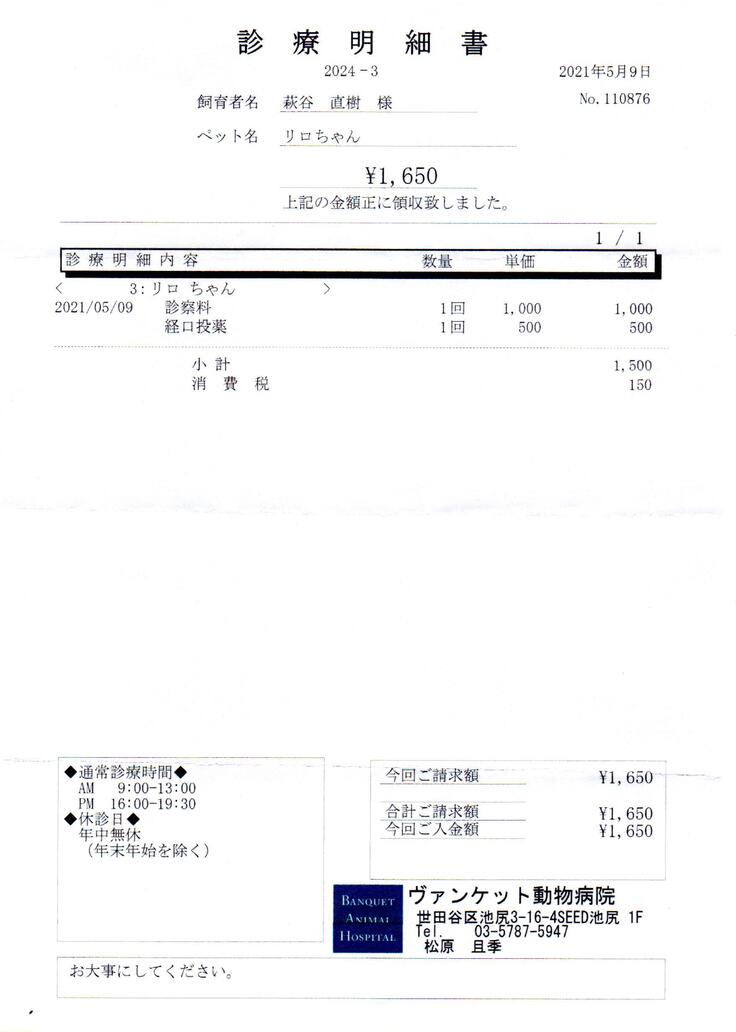 ・2021/5/8 江東どうぶつ医療センターにて初診