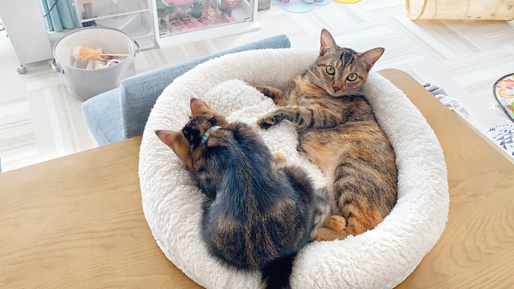 (結婚前は旦那も私も、保護してから20年以上生きてくれた猫たちと実家で暮らしていました。)
