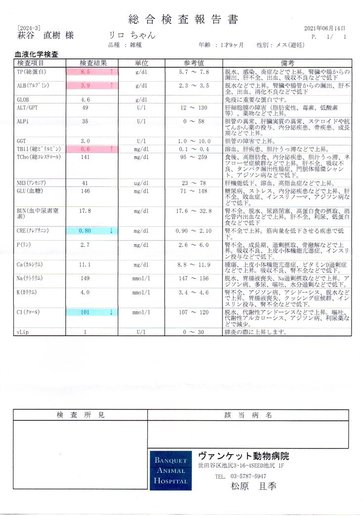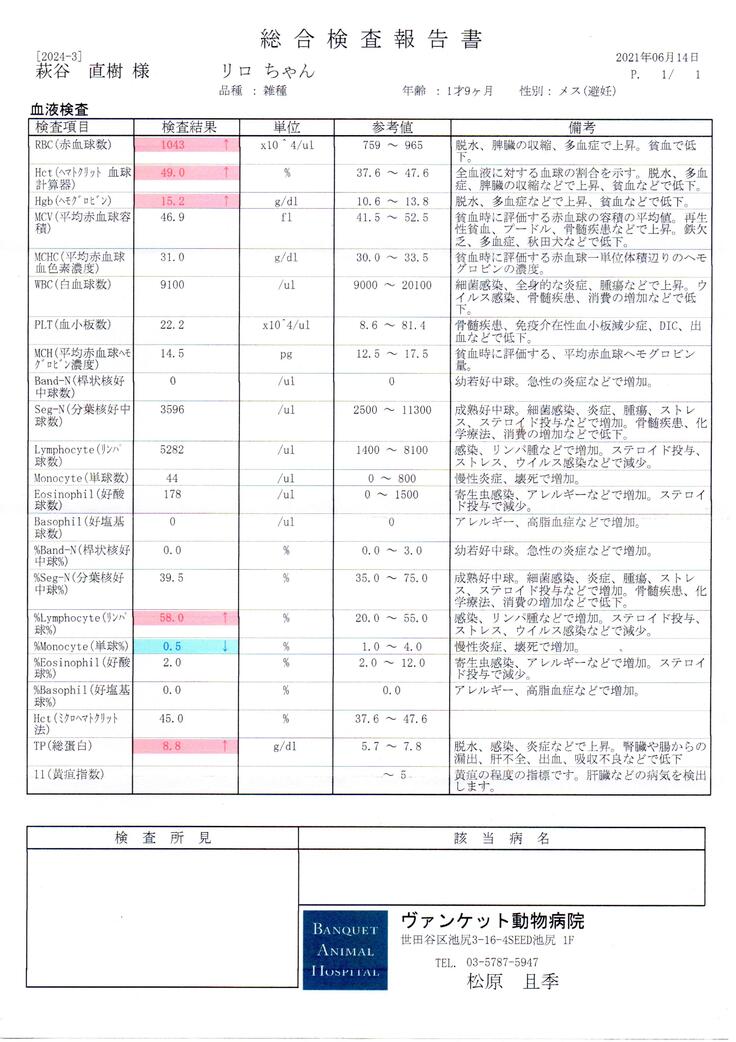 血液検査の数値が基準値になるようリロちゃんと共にまだまだ頑張ります!
