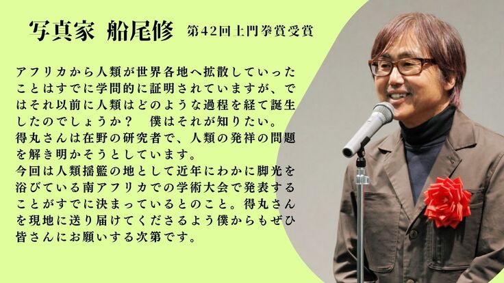 昨年、第42回土門拳賞を受賞された写真家の船尾修さんから、応援メッセージをいただきました。
