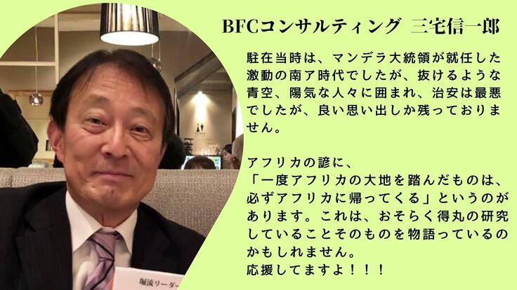 BFCコンサルティング 三宅信一郎様(日商岩井同期入社)から応援メッセージを頂きました(5)