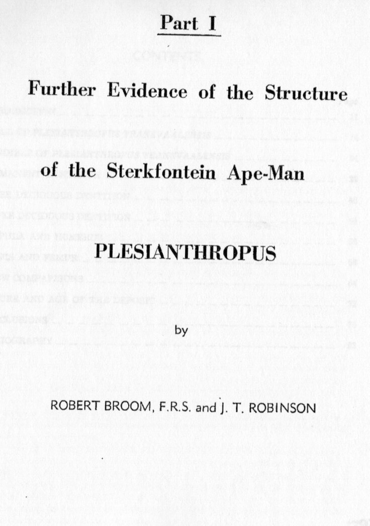 「私の妻が化石人類の頭蓋を発見した」という記事も、なんだかおかしな気もするが、それよりもこの化石は、現生人類につながらない。ゴリラやアボリジニ、どこで発見されたかわからないアウストラロピテクスの頭蓋骨と比較しているが、顔の骨格や歯の形など、ダートやブルームのような詳細な解析はない。