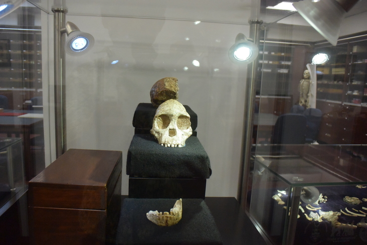 このプロジェクトの主人公 タウング・チャイルド(ウィッツ大学進化学研究所化石標本室にて)