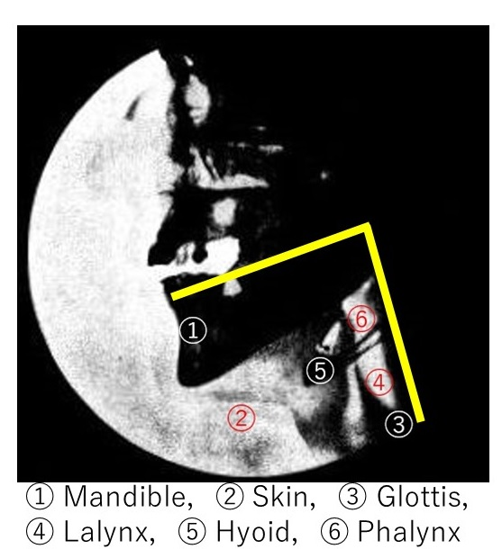 千葉・梶山のレントゲン写真をみると、下あごが皮膚を突っ張ることで、口腔底の下に空間が生まれ、喉頭がそこに下っても窒息しなくなった。