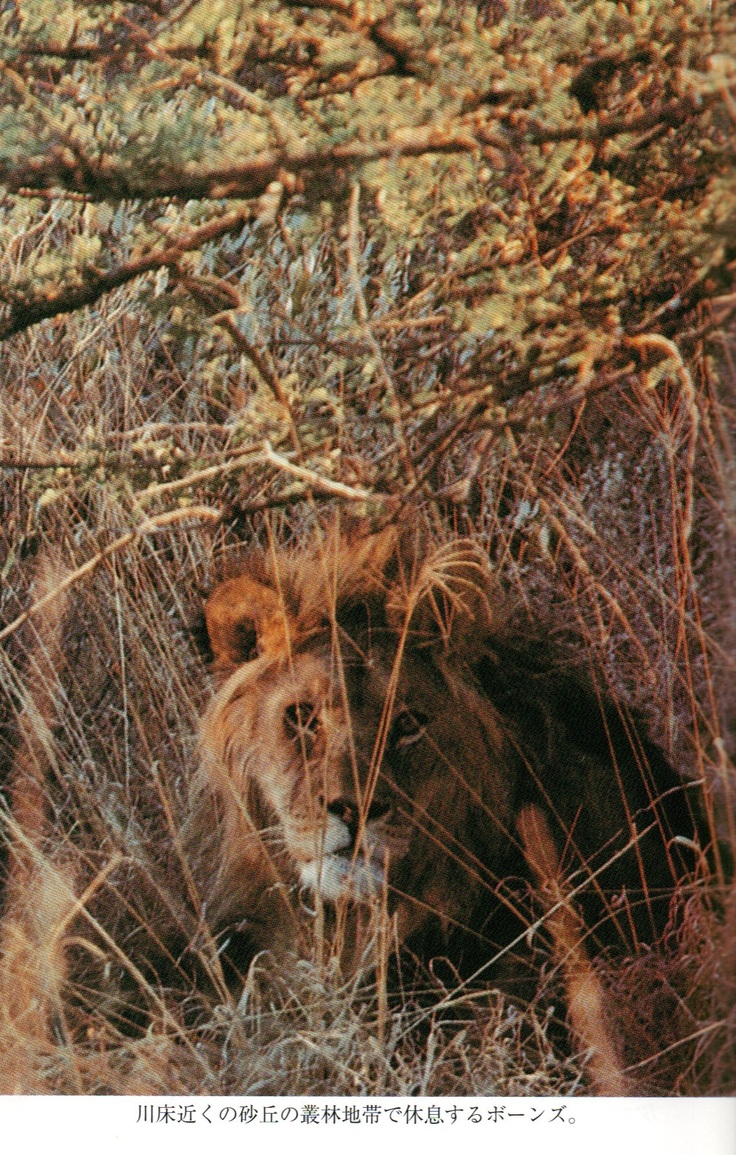 1977年9月、食料品を補給するために町にでかけた二人は、サファリ・キャンプに一泊するように誘われる。そこで輸入食材をたっぷり使ったぜいたくな料理を食べ、おいしいお酒を飲み、アメリカのイリノイ州からハンティングに来た薬剤師とその奥さんに、ボーンズの治療のこと、奇跡的に回復して群れの優位の雄にカムバックしたことなどを話した。