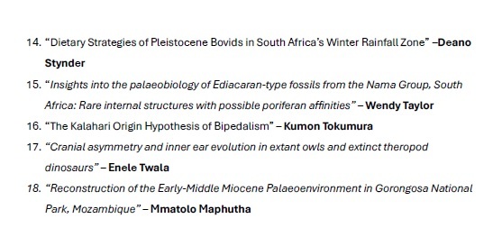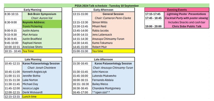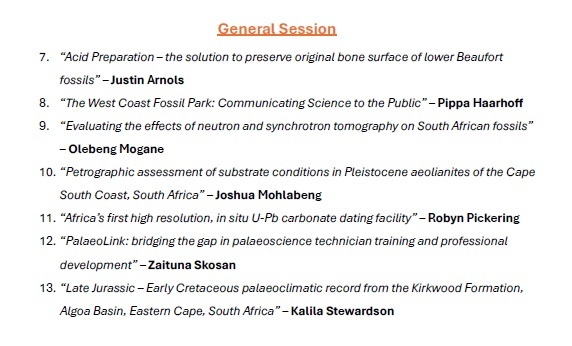 南ア古生物学会から、9月8日から13日までのスケジュールを送ってきました。