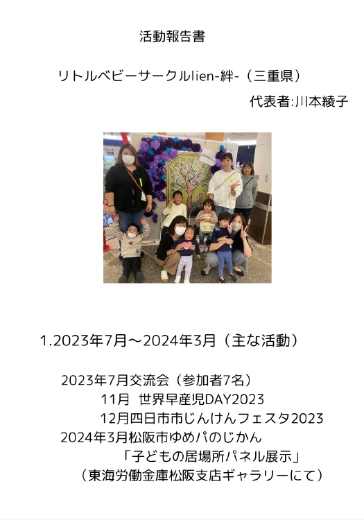 リトルベビーサークル lien-絆-(三重県)さんから報告書が届きました。