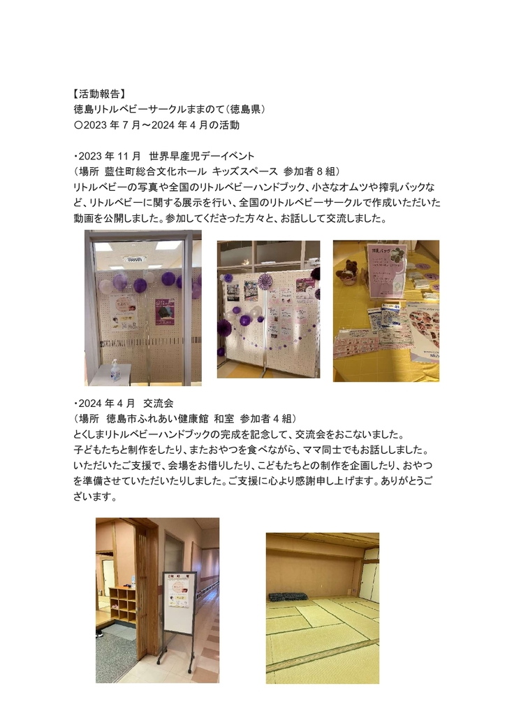 徳島リトルベビーサークル「ままのて」より活動報告が届きました。