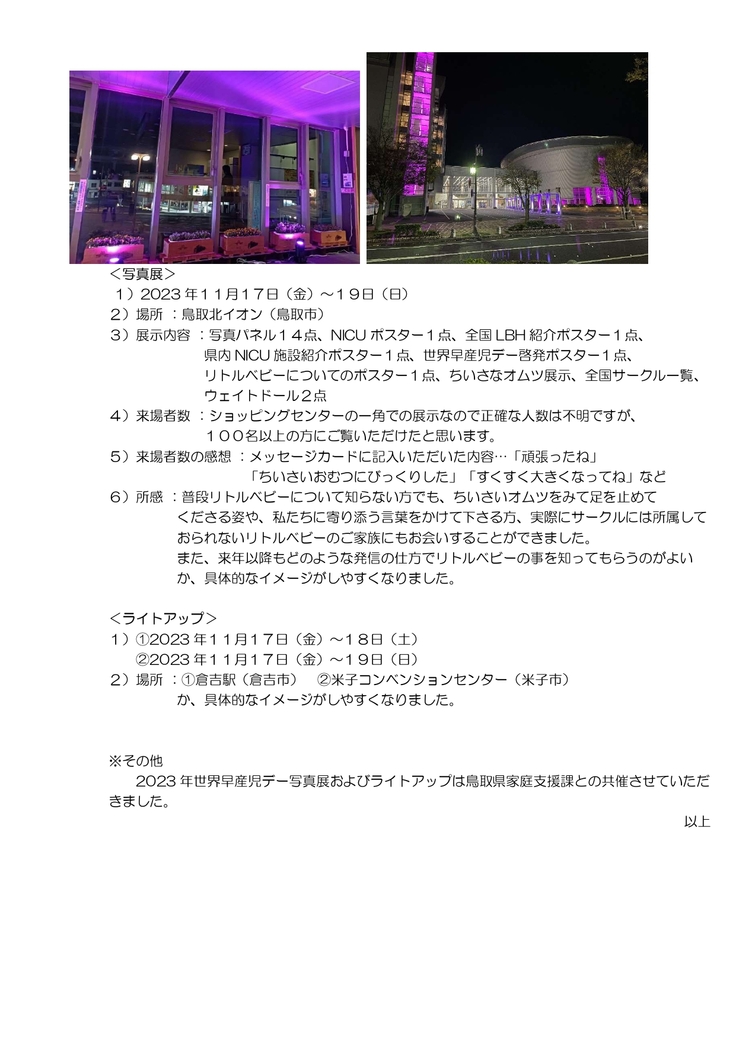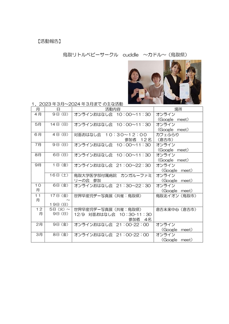 鳥取リトルベビーサークル cuddle ~カドル~より報告書が届きました。