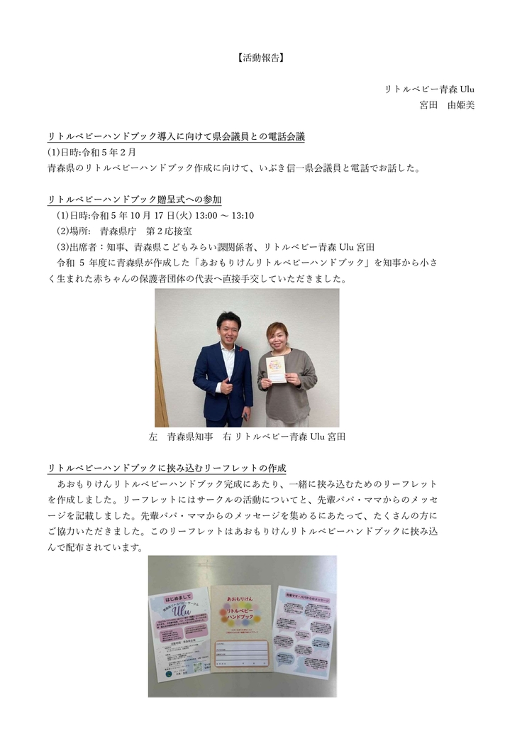 リトルベビー青森Ulu(青森県)より活動報告が届きました。