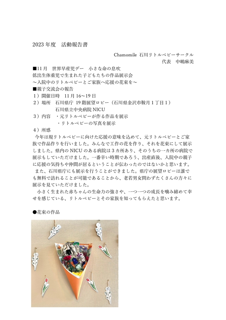 Chamomile石川リトルベビーサークル(石川県)より活動報告が届きました。
