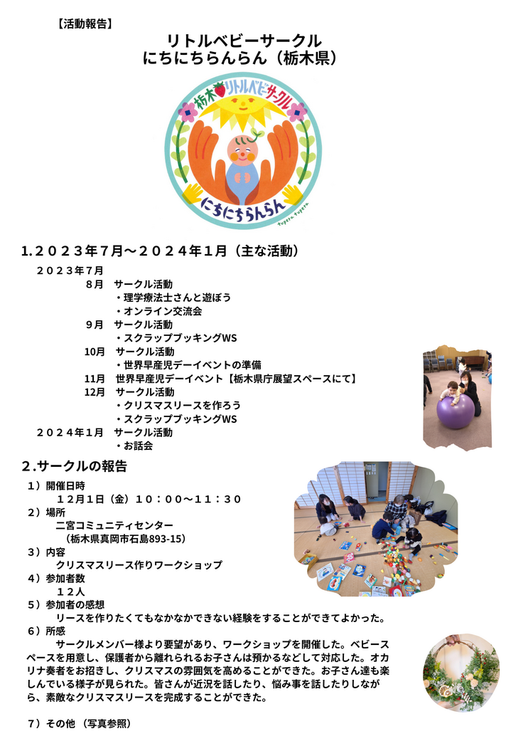 リトルベビーサークルにちにちらんらん(栃木県)より活動報告が届きました。