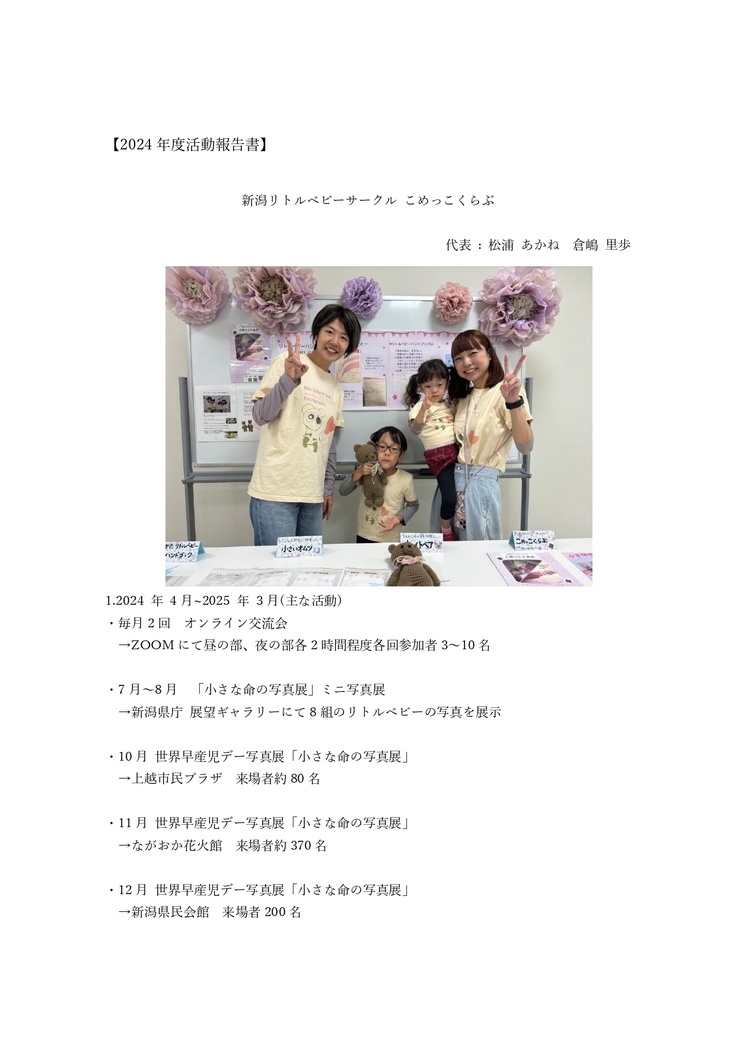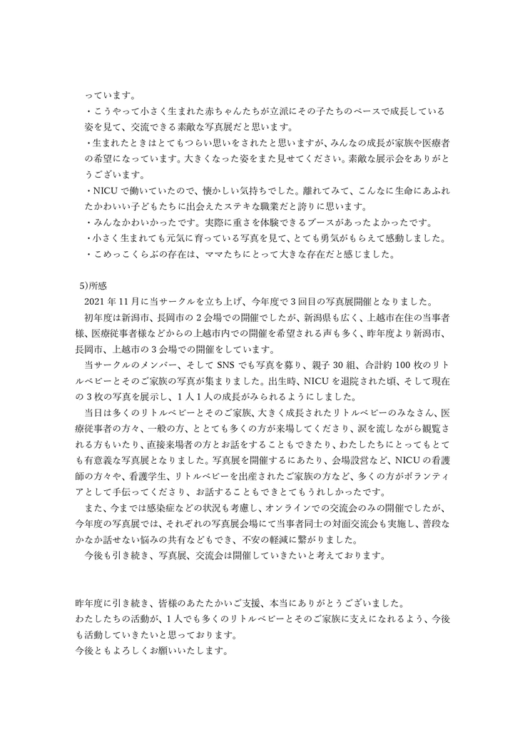 ・活動報告を年に1回メールでお送りします。