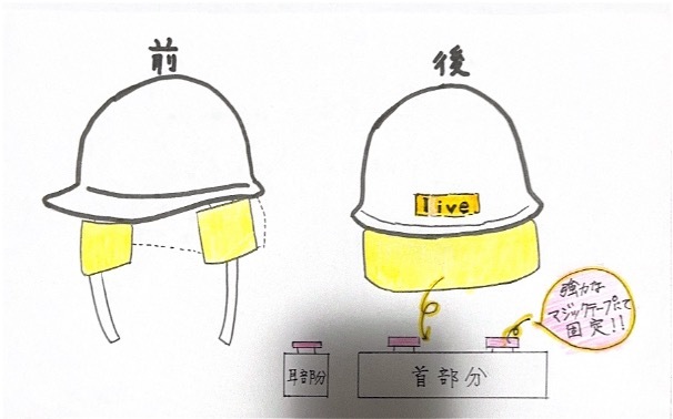 サービス内容は、ヘルメットに常備薬収納ポケットや災害時に役立つ備品等を付帯。