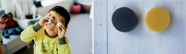 石けんのもと粘土のようにこねて作ります。