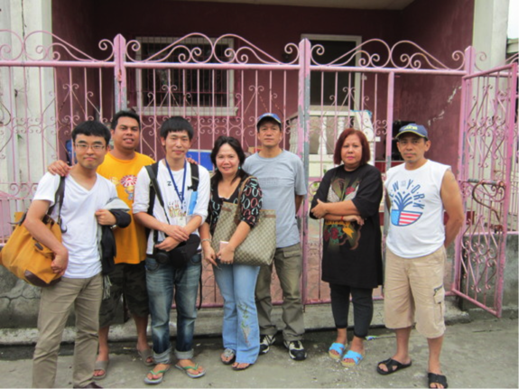 (左端が加藤、フィリピンへ強制送還に関する調査で渡航、フィリピン・カビテ地方にて)