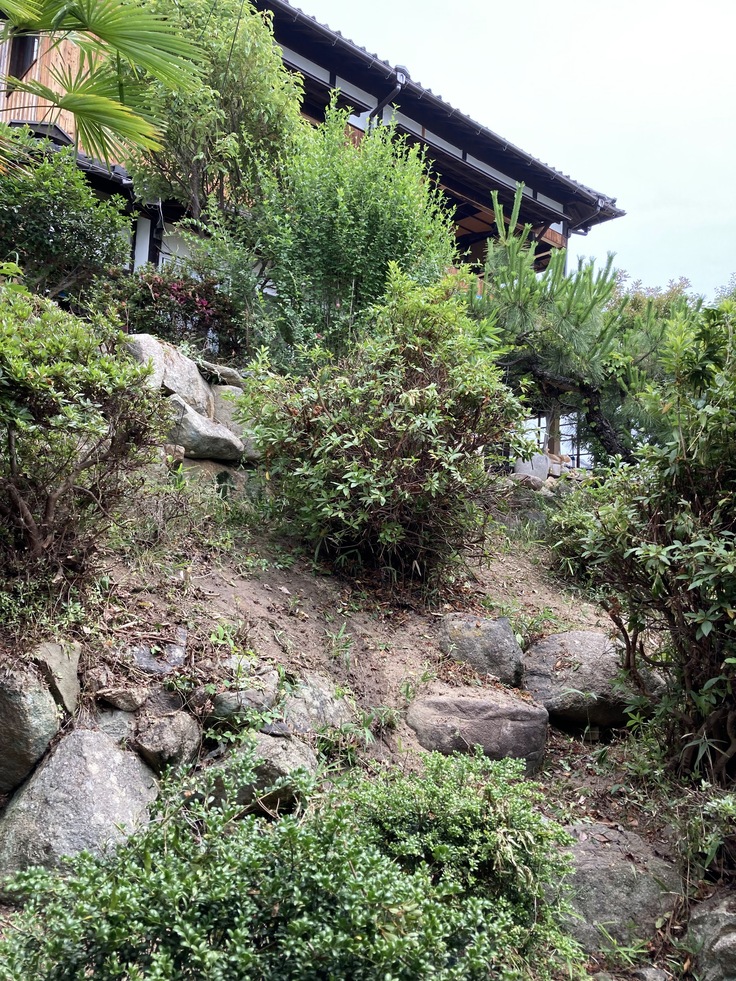 土壁削り、屋根隙間埋め、ゴミ整理、ゴミ出し、草刈り、剪定