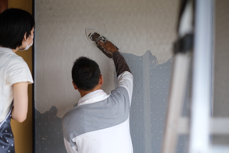お手伝いご参加 5名:漆喰左官/資材運び/ゴミ出し