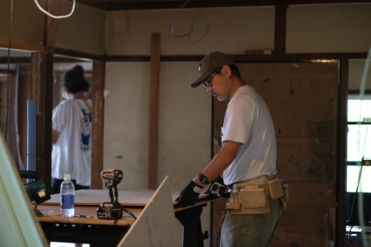 TANKさんの工事:壁下地、床補修、資材運び