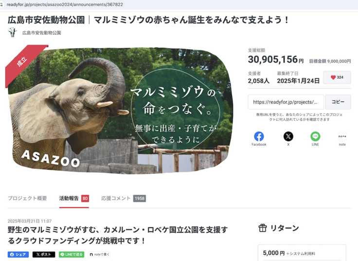 同じREADYFORのプラットフォームで、マルミミゾウの『