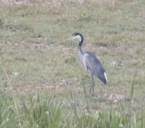 まず、日本でも大型の鳥として比較的、馴染みのあるアオサギ。その近縁のズグロアオサギが、乾き切ったバイの中でせっせと採食しています。水辺の鳥のイメージがあったので、雨季のバイでカエルなどを捕りそうなものですが、どうやら虫がお目当ての様子。