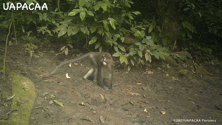 彼らは今のところ絶滅の危惧はないのですが、バイに出てくるアビシニアコロブスや、ハナジログエノン(湿地の中までは出てきませんが、周りの木々の上で観察できることがあります)とは違い、ジャングルの地面に近いところで暮らしているので、直接観るのは至難の業です(うちのウェブサイトの「アフリカジャングル・ファクトシート」にも登場)。