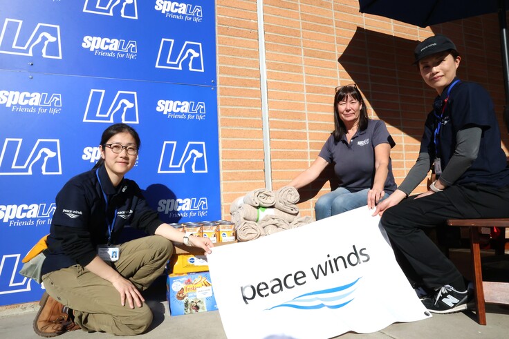 ピースウィンズの緊急支援チームは、現地時間1月14日、ロサンゼルス動物虐待防止協会 (Society for the Prevention of Cruelty to Animals Los Angeles 以下、spcaLA)の運営するアニマルシェルターにペット用の支援物資を配付しました。
