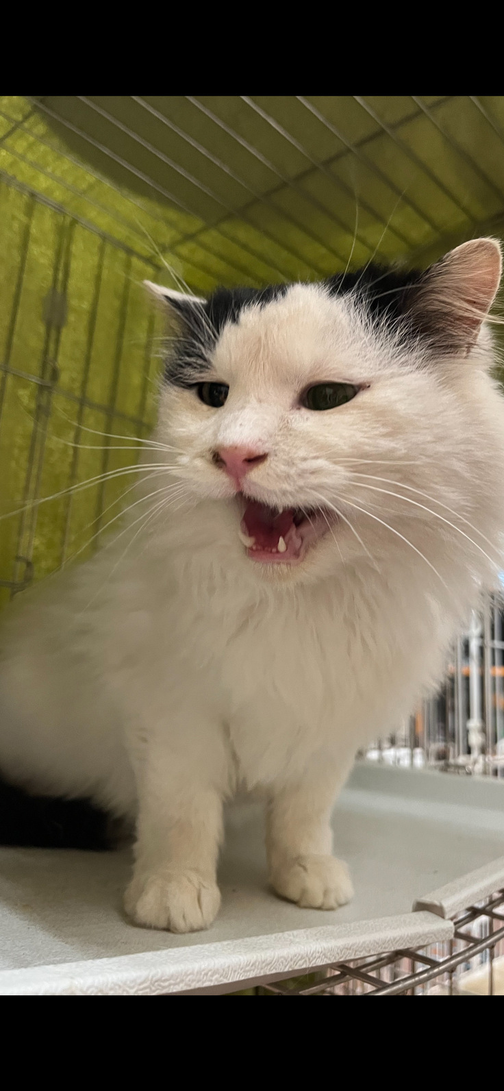保護されたばかりなので、これから、当団体で経過観察をしながら飼育し、心身共に落ち着いてから、白黒君の幸せを願って、ご縁がある方に譲渡したいと思っております。