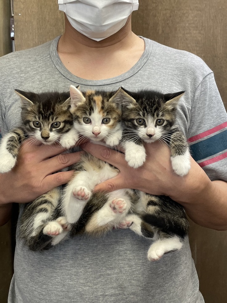 新たに生後1ヶ月半ほどの3匹の子猫がやって来ました。
