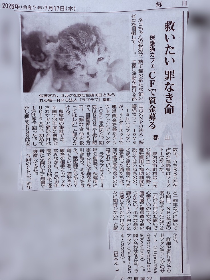 love.labのプロジェクトが毎日新聞に掲載されました!