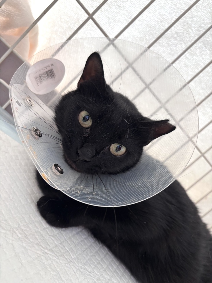 交通事故に遭い断尾手術をした黒猫ちゃん。