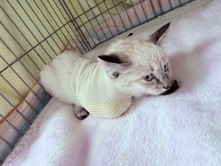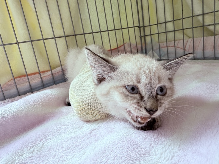 固定の期間が長くなりそうで、子猫ちゃんは不自由かもしれませんが子猫ちゃんが1日も早く元気になれるようにサポートして参ります。