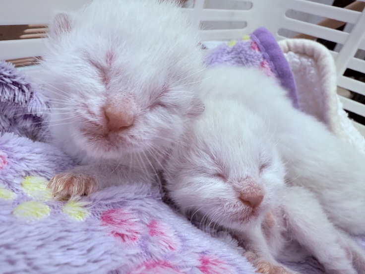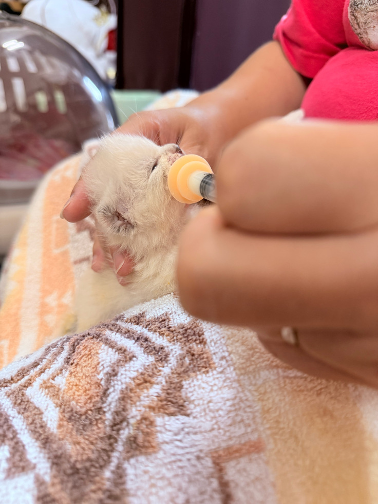 ちょっと下痢気味で、2匹が哺乳瓶を吸ってくれないので給餌しております。