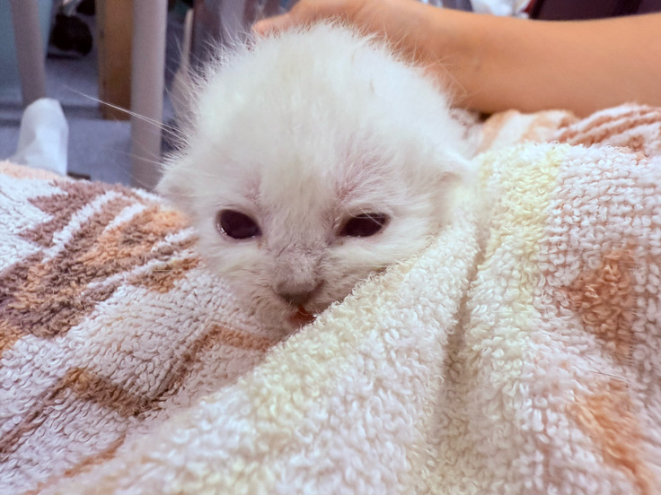 先週、臍の緒がついた状態で保護された乳飲み子3匹。