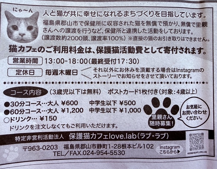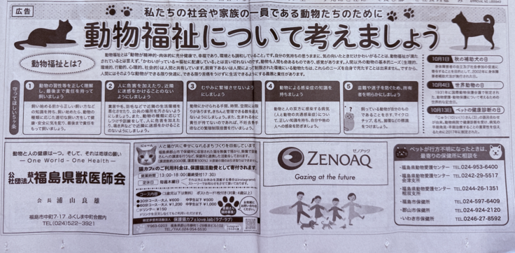 福島民友新聞社様は以前から動物愛護にとてもお力を入れており、とても感謝をしております。