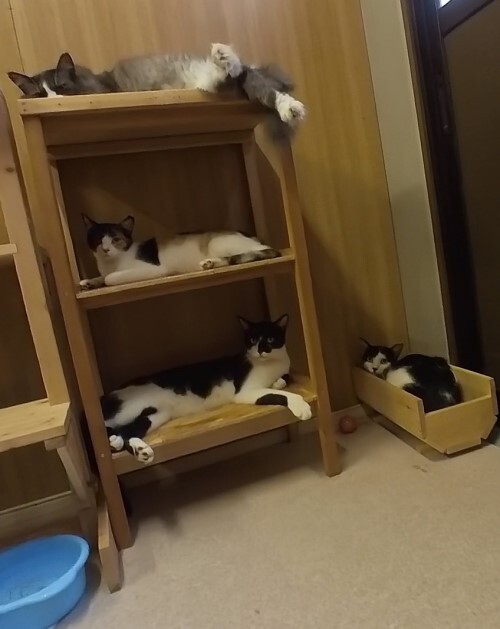 猫たちのシェルター生活は家庭と同じとはいきませんが、保護猫たちが日々幸せに生活できるよう「今できるベスト」を尽くしてお世話をしています。