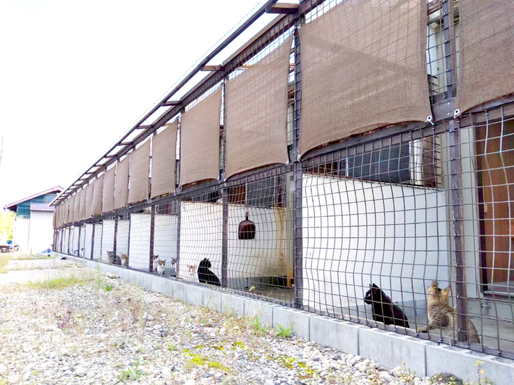 2021年には、通常のシェルターに加えて、エイズキャリアや白血病の猫たちの特別棟、体調崩している猫たちを個別に飼育管理する療養部屋(通称ICU)も別棟で作りました。