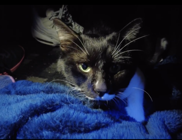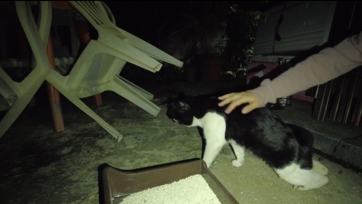 自宅にはすでに、保護し我が家にお迎えした保護猫3匹がいるため家の中には連れ帰ることができず、21時も過ぎており病院にも連れて行けなかったため、車で一晩過ごしてもらう事にしました。