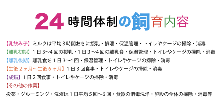 ただし預かる猫の大半が、生後間もない小さい猫です。小さい猫は、体力や免疫が少なく環境の変化など些細なことでも負担がかかってしまいます。