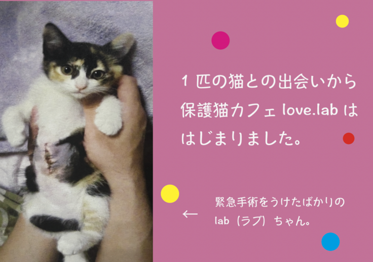 はじめまして。福島県郡山市にある、保護猫カフェlove.labの渡邊愛子と君島貴之です。保護猫カフェを始めてから今年で8年目。たくさんの保護猫との出会いがあり、泣いたり笑ったりと激動な7年間でしたが、多くの皆様のお力添えにより、活動を7年間続けることができ、とても嬉しく思います。ここまで応援してくださった皆様に、この場を借りてあらためて、心より感謝申し上げます。