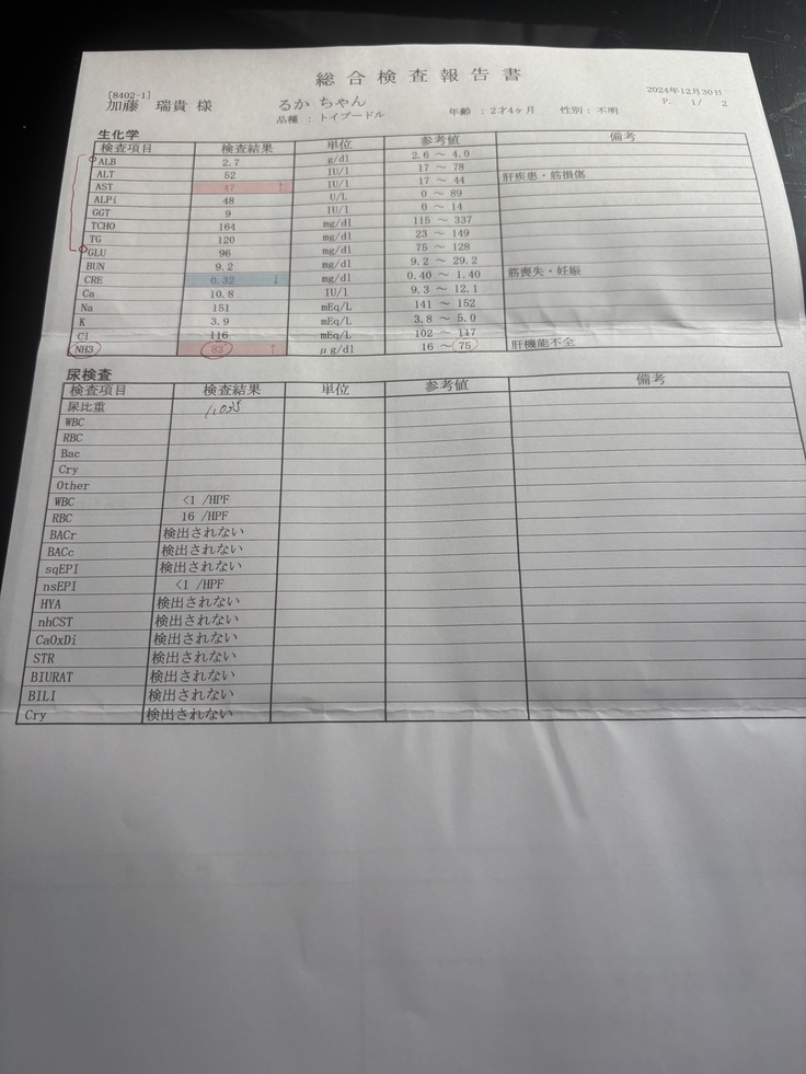 病院で尿検査の結果は問題なしとのことでしたが、泌尿器科専門の先生をもってしても原因の特定に至らず…。血液検査を後日行うことになりました。血液検査の結果、アンモニアの数値に異常があり、参考値75のところ87という結果でした。