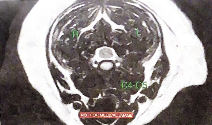 夜間救急にすぐに連れて行きレントゲン撮影をしてもらいましたが、原因は不明でした。翌日かかりつけ医に朝一番で行って診察してもらいましたが、頸椎ヘルニアの可能性があると言われMRI撮影が必要とされました。浜松市ではすぐに撮影してくれる病院はなく、静岡県島田市に撮影をしてくれる病院を探し出し検査後、