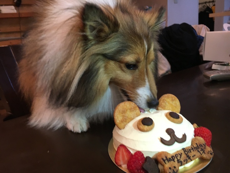 ラッキー 1歳の誕生日、生まれて初めてケ-キを食べました