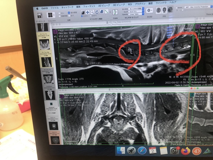赤丸、左側が、1年4ヶ月前に発症した、最初の病巣になります、