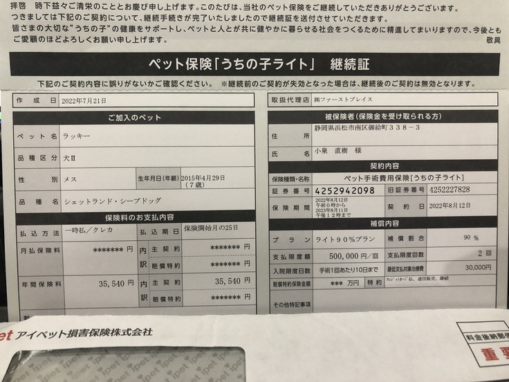 静岡県に住んでおります、小泉とラッキ-と申します。既にラッキ-を。