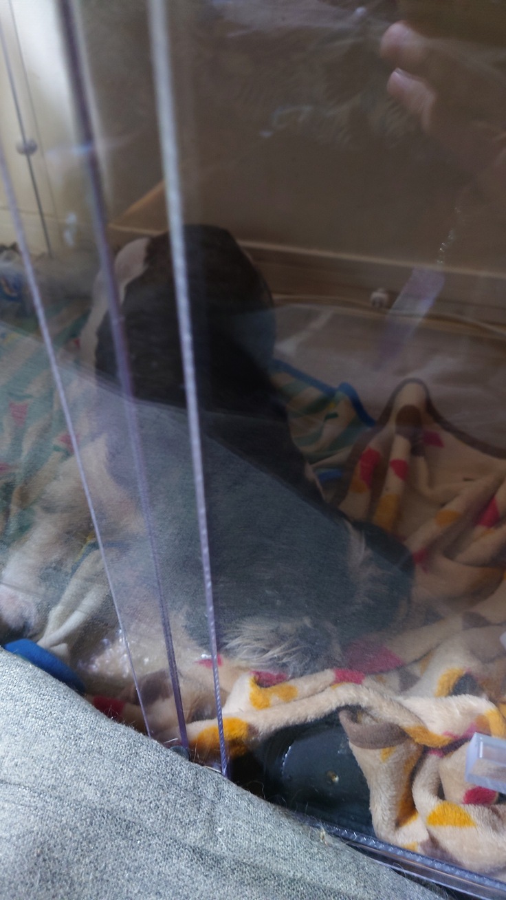 酸素室へ入れたのち、また呼吸が早いものの横になって、目を今は閉じて寝ています。
