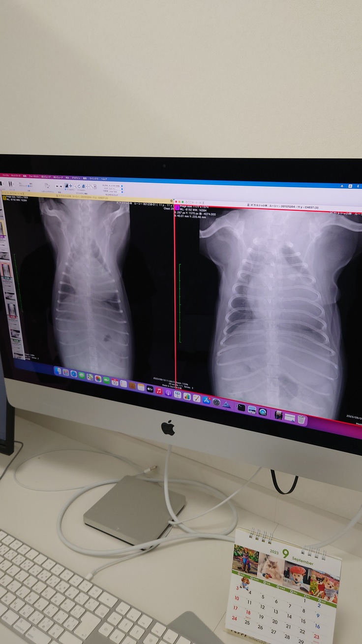 右が入院前の肺、左が今日の朝の段階での肺の状態です。